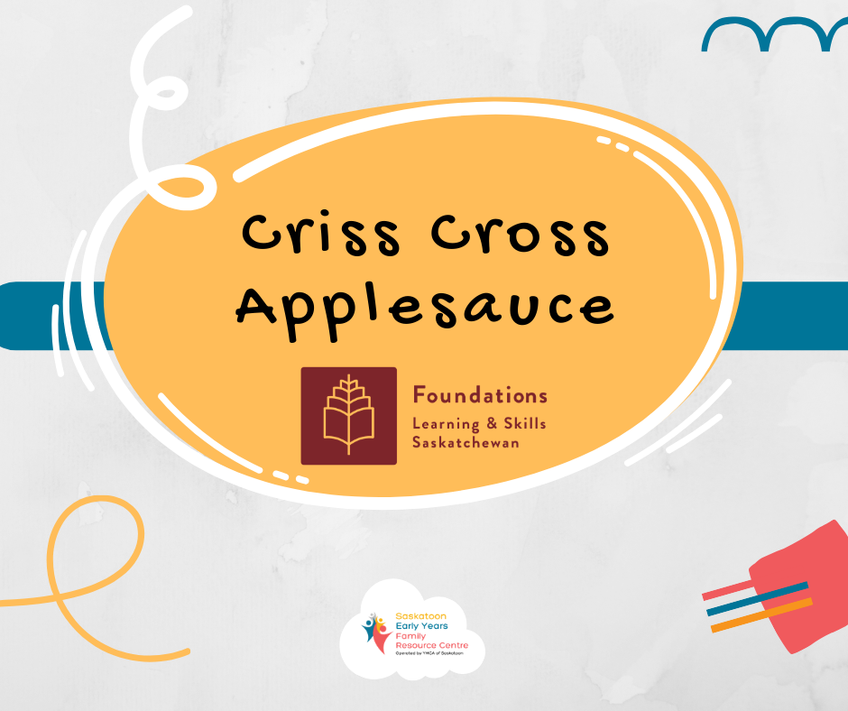 Criss Cross Applesauce is a program offered by Foundations Learning and Skills Saskatchewan for children ages 3 to 5 and their caregivers. Using songs, rhymes, storytelling, and interactive activities, the program supports early learning, language development, and caregiver–child connection. It also includes a parent session, and participants will receive a take-home book and snacks. The program emphasizes engagement, curiosity, and shared learning between children and caregivers.